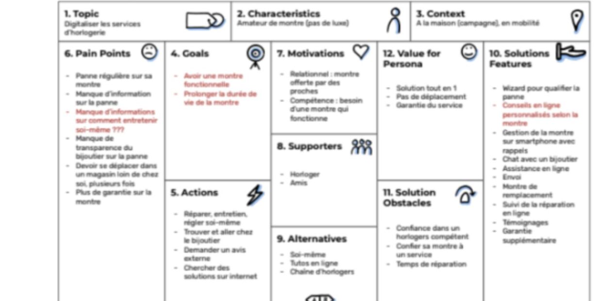Once your notes are organized, take it a step further by mapping insights onto a User Needs Investigation Canvas. This simple tool helps you cluster key findings—like pain points, goals, and context—so you can start spotting patterns across interviews. It’s especially useful for turning raw observations into actionable user needs, setting a solid foundation for ideation or prioritization later on.